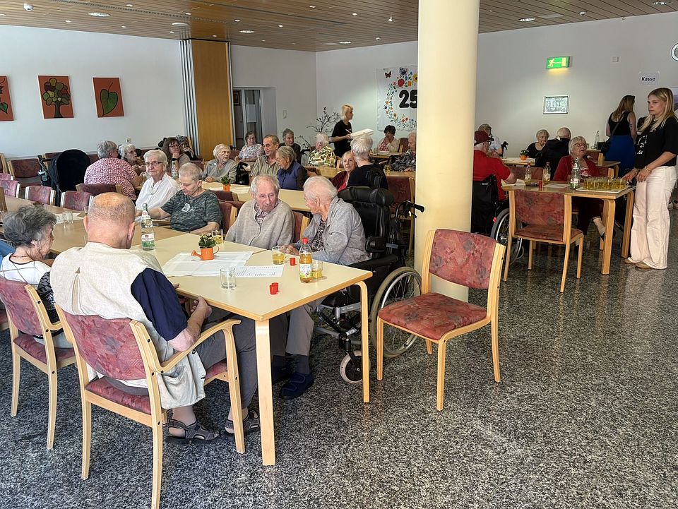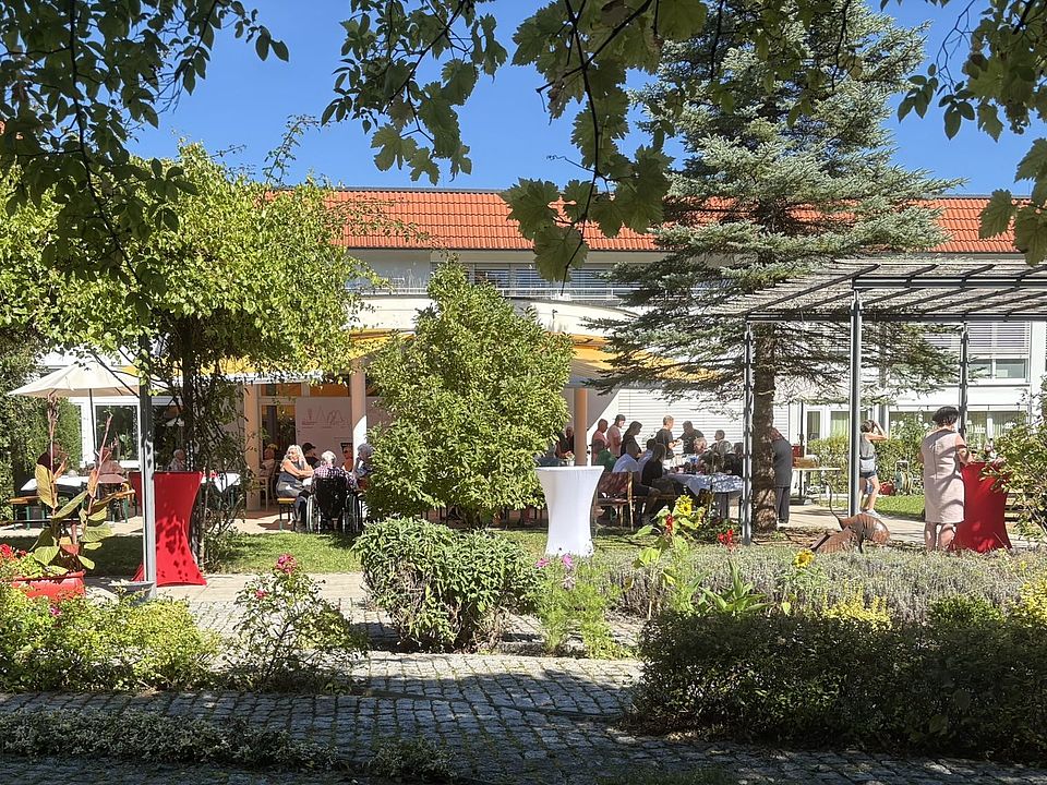Bei leckerem Gegrillten und Salaten haben die vielen Festbesucher, Bewohnerinnen und Bewohner, Angehörige und Gäste, das schöne Sommerfest in vollen Zügen genossen.