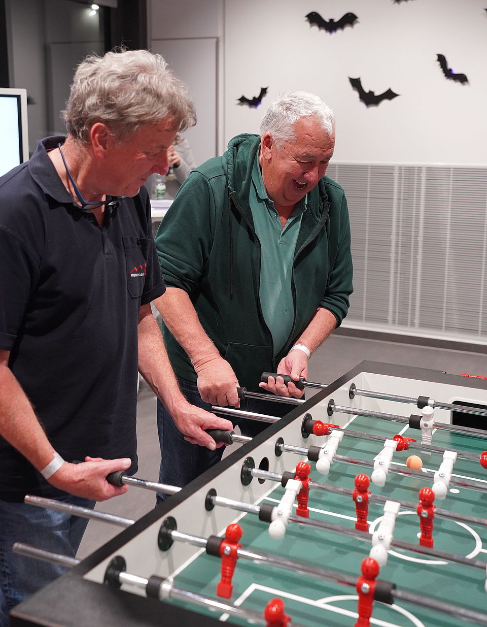 Bei der Sommer-Edition des Turniers im Juli waren es 22 Teams gewesen. Erstmals waren auch zwei Rentner dabei. Sie hatten über den DRK-Newsletter vom Tischkicker-Turnier erfahren und dann angefragt, ob sie mitmachen dürfen.