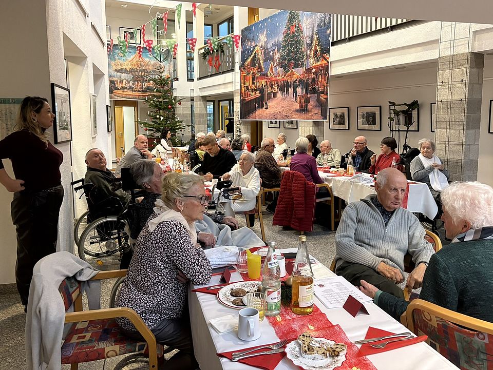 Das Programm begann um 15 Uhr mit der Eröffnungsrede von Heimleiter Franky Koungang Likeufack. Er dankte zunächst den Mitarbeitenden, die die Feier organisiert haben, sowie für die „wunderbare Dekoration“. 2025 sei ein Jahr voller Herausforderungen gewesen. Er lobte die Mitarbeitenden, die „mit vollem Engagement dabei“ seien. Mit einem zum Teil neuen Team sei es gelungen, ein „Wir-Gefühl“ zu entwickeln. „Gemeinsam haben wir viel erreicht.“