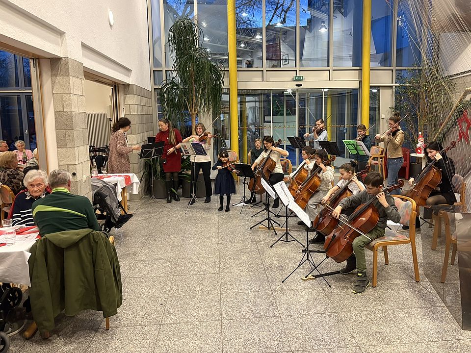 Ebenfalls mit Begeisterung aufgenommen wurde das Konzert der Cello-Akademie aus Rutesheim. Die Nachwuchsmusiker brachten bekannte Weihnachtslieder mit Geigen und Celli zu Gehör. Das Konzert kam bei Bewohnerinnen und Bewohnern, Angehörigen und Gästen sehr gut an. Alle haben den Nachmittag mit dem abwechslungsreichen Programm sehr genossen.