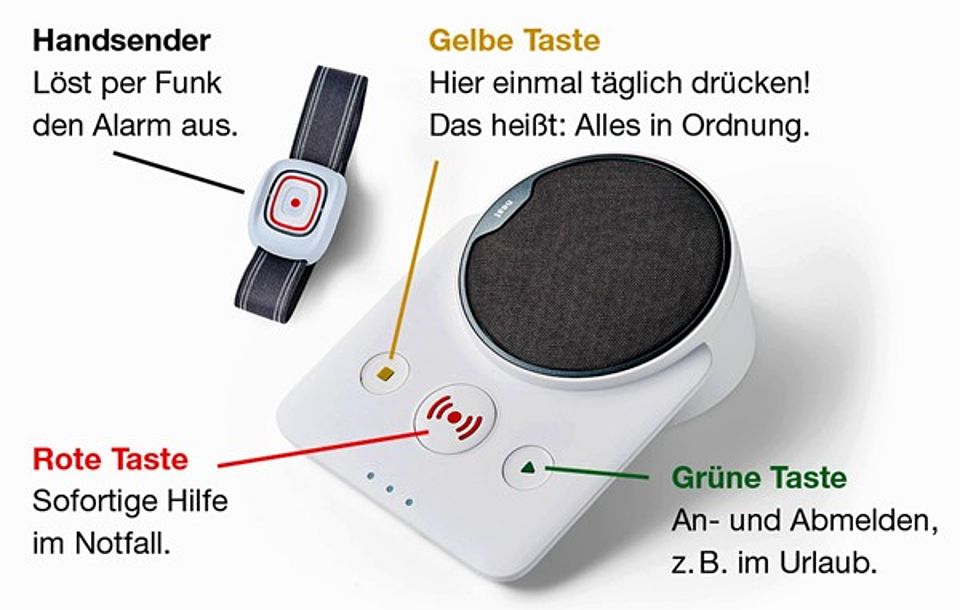 Sie können unsere Hausnotrufzentrale im Notfall einfach per Knopfdruck alarmieren. Sie tragen den Funksender entweder wie eine Uhr am Arm oder an einer Kette um den Hals. Unsere Hausnotrufzentrale ist an jedem Tag rund um die Uhr besetzt. Im Notfall leisten wir schnelle Hilfe nach Ihren Bedürfnissen und gesundheitlichen Erfordernissen. Im Vorfeld können Sie bereits festlegen, wie wir verfahren und welche Personen wir informieren sollen.