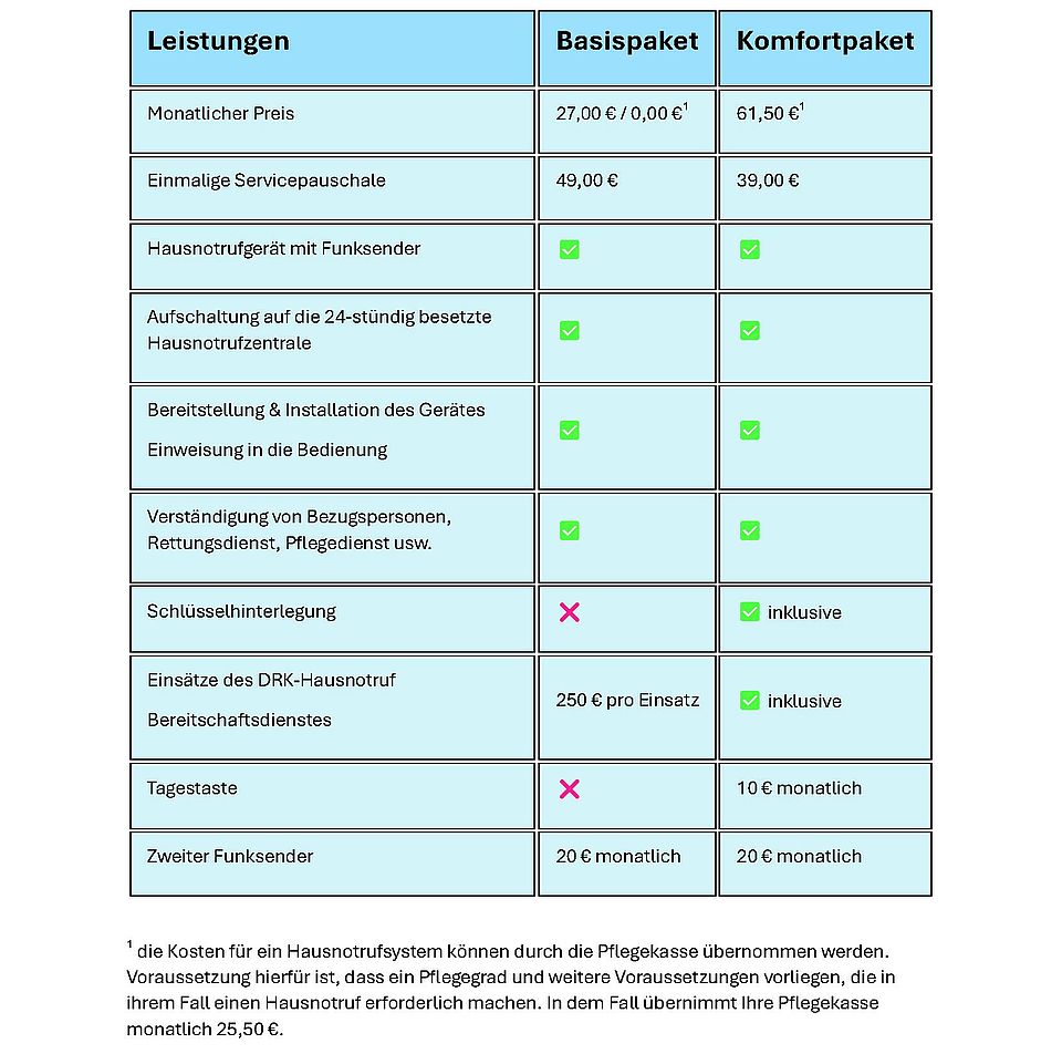 Bei Menschen mit anerkanntem Pflegegrad trägt die Pflegekasse unter bestimmten Voraussetzungen die Kosten für alle Leistungen des einfachen Hausnotrufpakets. Das DRK übernimmt dabei die Antragstellung bei der Kasse.